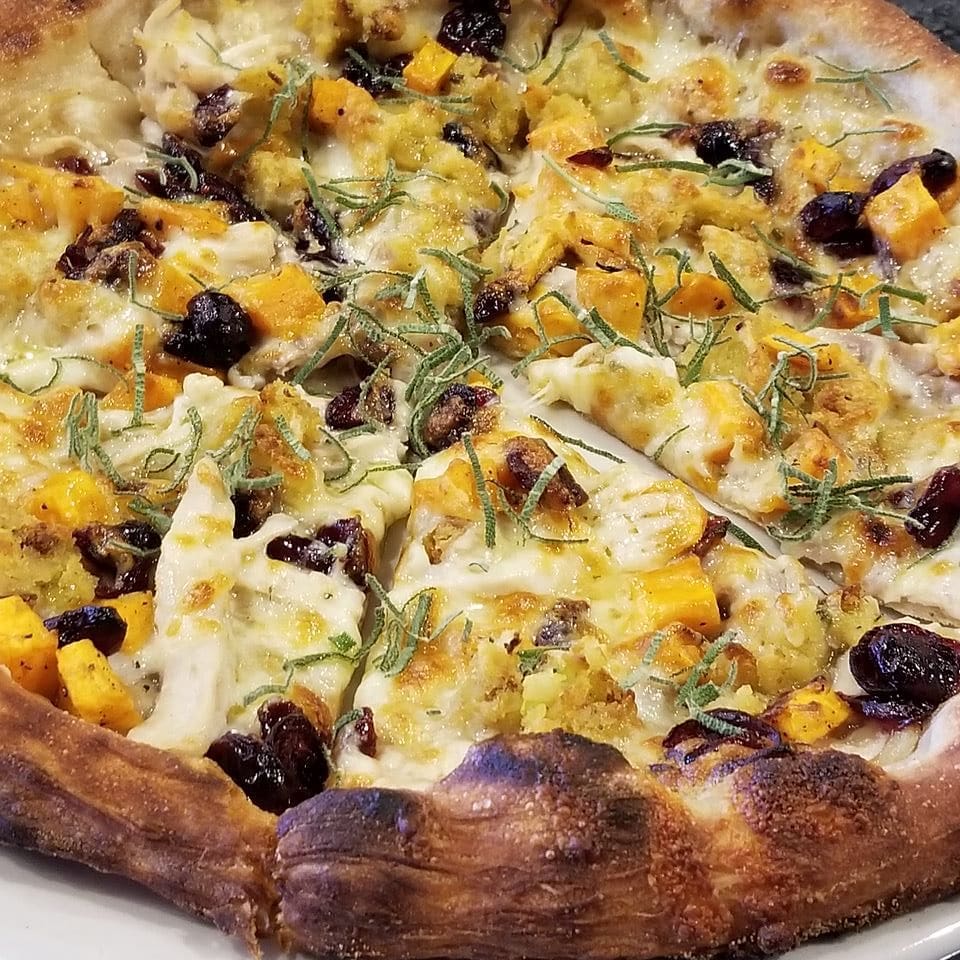 Folino’s menu is filled with standout options, but the Truffle Pig is a crowd favorite. With an olive oil base, three-cheese blend, bacon, truffle oil, asparagus, buffalo mozzarella, and prosciutto, this pizza is as indulgent as it gets.